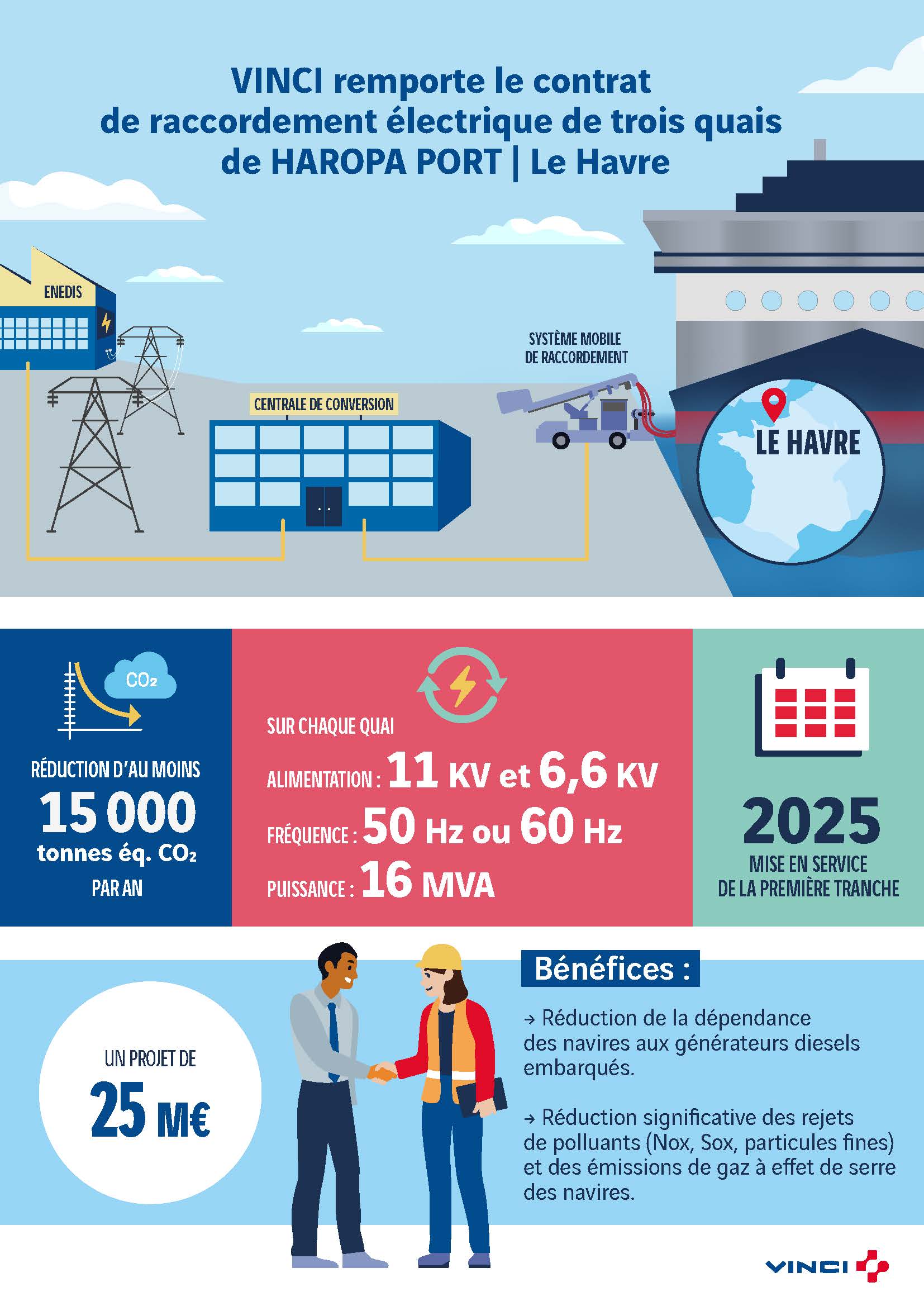 HAROPA PORT a attribué à un groupement d’entreprises réunissant des filiales de VINCI Energies et de VINCI Construction, la mise en œuvre d’un système de raccordement électrique en haute tension des paquebots sur les trois quais destinés à l’accueil Croisière de la Pointe de Floride de HAROPA PORT | Le Havre.